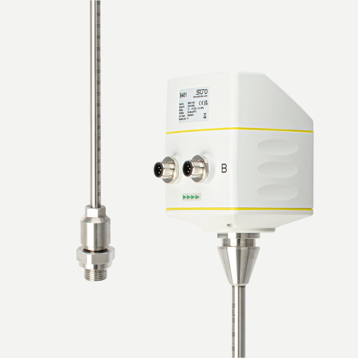 This allows the sensor to be easily connected to SUTO displays, like the SUTO S331 Data Logger and/or third party displays and PLCs. The S401 can also be connected directly to monitoring software solutions.