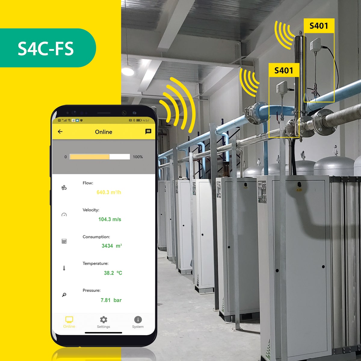 S4C-FS Smartphone App for Compressed Air and Gas Flow Meter